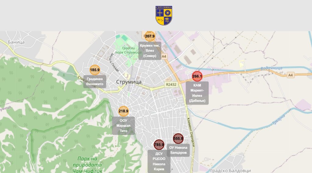 Екстремно лош, опасен по здравје. Вака алармираат мерните станици на Министерството за животна среднина но и на Општина Струмица, вечерва околу 20 часот и 30 минути. Пиковите на штетните ПМ 10 честички на сите мерни станици што ги постави општината се во црвена алармантна боја. На мерната станица кај ДСУ „Никола Карев“ во Струмица кај 20 часот и 30 минути, станицата покажа и над 700 микрограми штетни ПМ 10 честички на метар кубен. Околу 550 поокажуваше станицата кај ООУ „Никола Вапцаров“ а помалку станицата кај ООУ „Маршал Тито“. Високи концентрации на ПМ 10 честички односно над дозволеното имаше и кај градинката Виножито, влезот на Струмица од кај Радовиш и кај Мало стопанство на излезот од Струмица кон Дабиље но не како кај средното училиште Никола Карев.