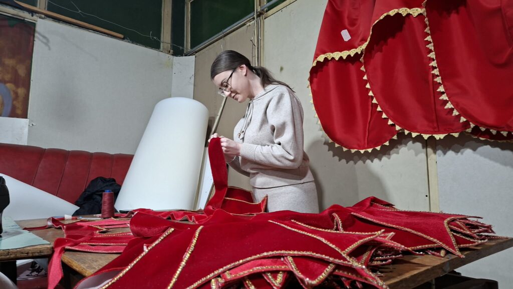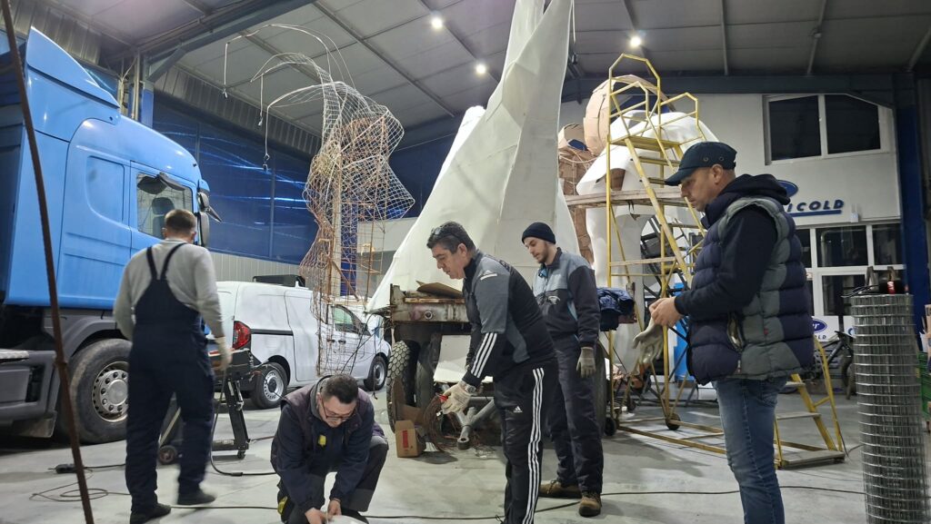 Мажите пак од групата ,,Струма“ цели три месеци го работат возилото. Повеќе стотици килограми железни профили, текстил, сунѓер ќе ја илустрираат карневалската магија. Ќе има карневалска шапка со две маски. Мажите се собираат навечер во механичарска работилница и го работат возилото кое годинава ќе биде доста големо.