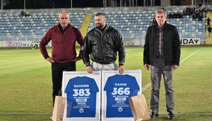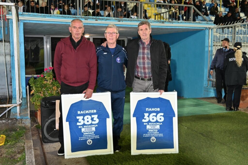 Викендов првиот човек на ФК Беласица Славчо Васков Пинда им додели плакета и врамен дрес на Милан Василев и Ристо Панов поранешни фудбалери на клубот кои имаат одиграно по стотици натпревари во над десетина сезони. Станува збор за двајца фудбалери кои оставија силен печат во струмичкиот фудбал но и во синобелиот табор бидејки ги сметаа како носители на играта на ФК Беласица.