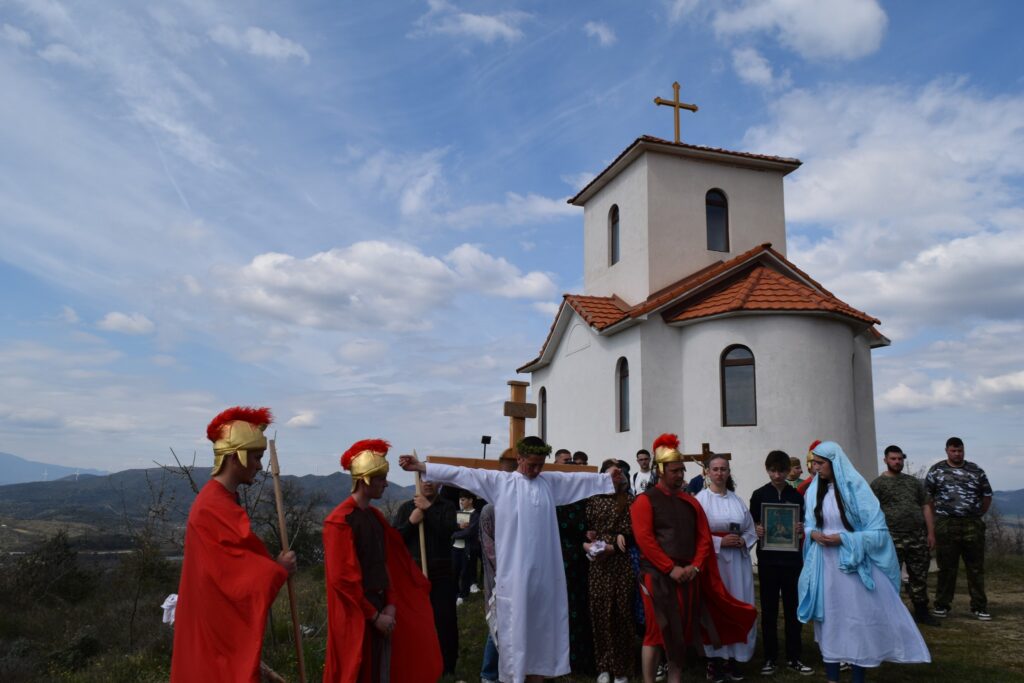 По завршувањето на Крстниот пат, следуваше света неделна Литургија, која ја предводеше епископот Стојанов. Во својата пригодна проповед, епископот истакна дека покрај тоа што преку побожноста Крстен пат се потсетуваме на страдањата на Господ Исус Христос, исто така нé води кон подлабоко размислување за таинството на Божјата љубов и за спасението на човекот. Преку библиската паралела меѓу дрвото на познавањето на доброто и злото во едемската градина и дрвото на Христовиот Крст на Голгота, беше нагласено дека она што некогаш станало знак за падот на човекот, преку Христовата жртва станува знак на спасение и нов живот. Крстот, кој некогаш бил знак на срам и смрт, во Христос станува централен знак на надежта, искупувањето и победата над гревот и смртта.