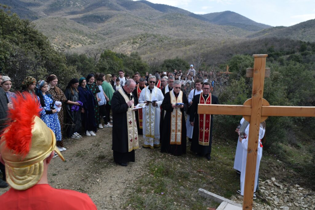 По завршувањето на Крстниот пат, следуваше света неделна Литургија, која ја предводеше епископот Стојанов. Во својата пригодна проповед, епископот истакна дека покрај тоа што преку побожноста Крстен пат се потсетуваме на страдањата на Господ Исус Христос, исто така нé води кон подлабоко размислување за таинството на Божјата љубов и за спасението на човекот. Преку библиската паралела меѓу дрвото на познавањето на доброто и злото во едемската градина и дрвото на Христовиот Крст на Голгота, беше нагласено дека она што некогаш станало знак за падот на човекот, преку Христовата жртва станува знак на спасение и нов живот. Крстот, кој некогаш бил знак на срам и смрт, во Христос станува централен знак на надежта, искупувањето и победата над гревот и смртта.