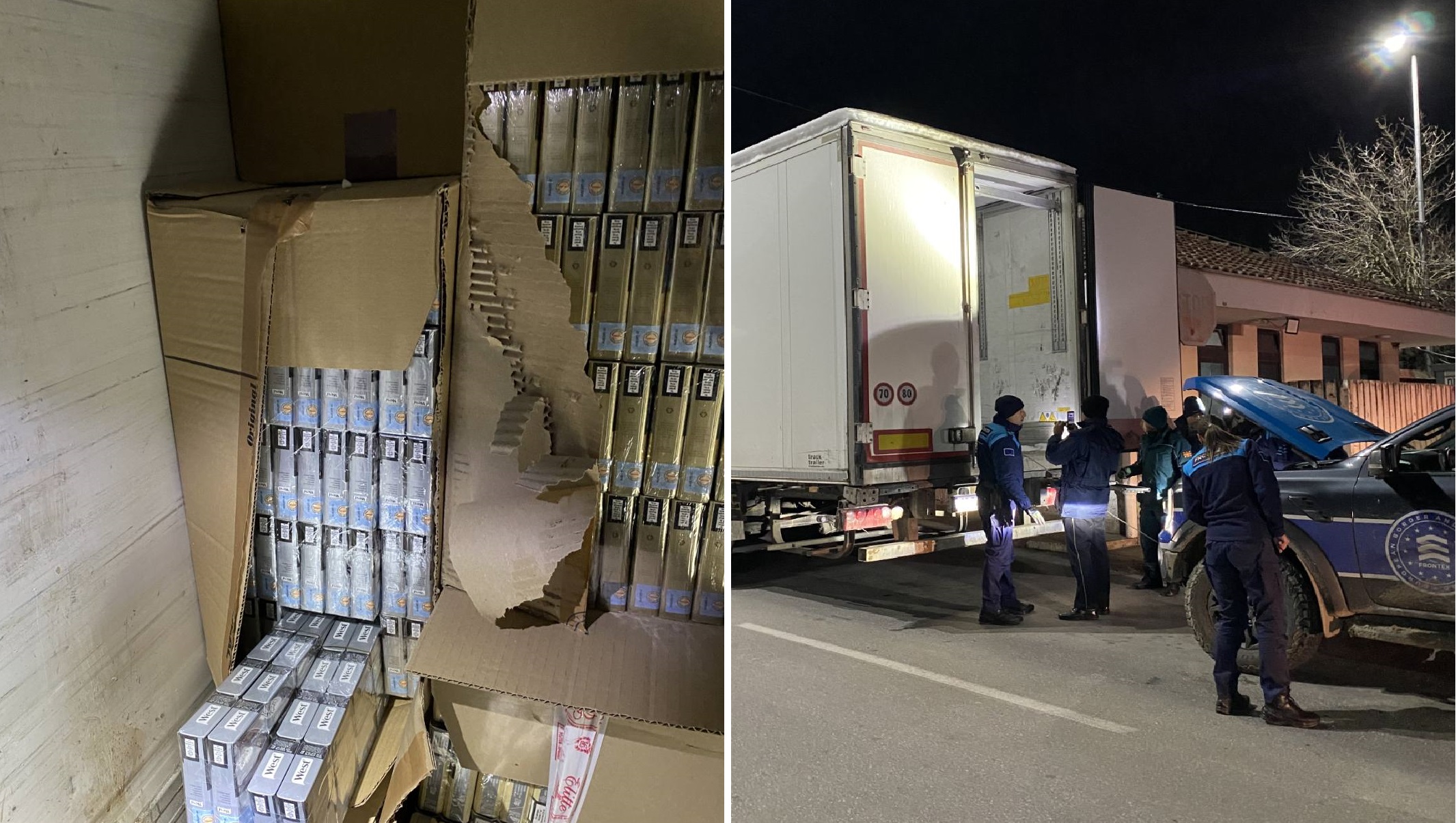 ,,При граничната контрола, утврдено е дека е фалсификуван WIN бројот на полуприколката во сообраќајната дозвола. При извршен преглед пак, во полуприколката, со помош на специјален уред-Ендоскоп пронајден е скриен бункер, во кој се пронајдени вкупно 5050 штеки, од кои 800 штеки цигари и 4250 штеки електронски цигари,, Соопшти Царинската управа
