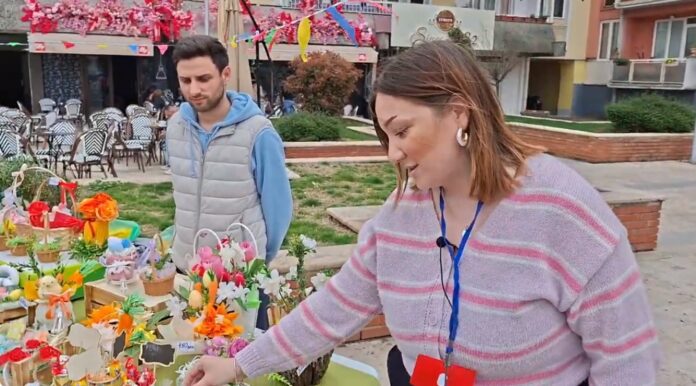 Ирена Филева од Струмица веќе една година слободното време го поминува во подготовка на колачиња но и креативни декорации за секој дом. Секој детал однапред го осмислува а отпосле се впушта во изработка. Вели дека оваа и е втора работа каде ја троши љубовта кон рачните творби, креативноста. Таа беше на базарот во Струмица пред Велигденските празници. Ја затекнавме со нејзиниот партнер Петар од Валандово како ги презентираа експонатите но и палетата на рачните изработки од Ирена