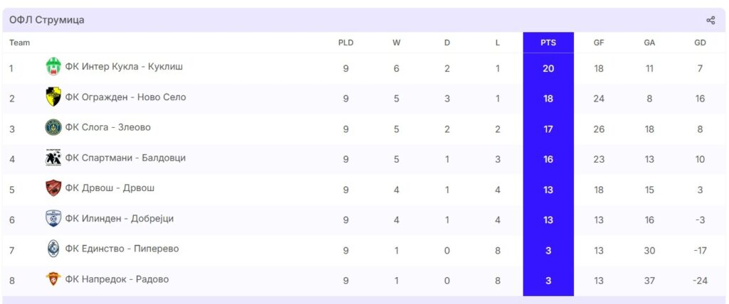 Огражденци пак денеска немаа проблеми. Со 3:0 беа убедливи над Единство од Пиперево а сигурна беше и Интер Кукла која беше подобра со 2:1 против Илинден Добрејци.Пријатно изненадување направи Напредок од Радово кој како гостин славеше кај Дрвош со 2:1.