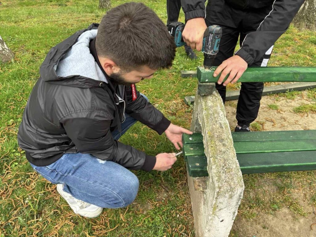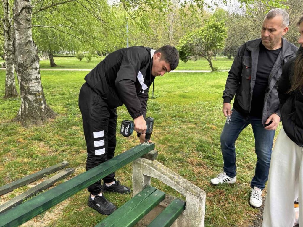 Средношколците од дрвопреработувачаката струка при ДСУ Никола Карев од Струмица почнаа да го монтираат дрвениот дел од клупите за одмор во големиот градски парк кои беа демолирани или оштетени. Станува збор за акција за која во декември минатата година учениците земаа мерка а на часовите по практична работа ги изработуваа дрвените талпи кои по процесот на обликување и заштита со боја сега се монтираат на лице место